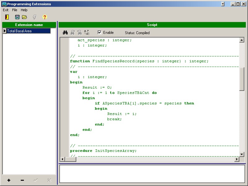 The user can extend the functionality of Field-Map by writing its own scripts in Field-Map Object Pascal. These functions consist in on-validate events, on-change events and on-demand routines.