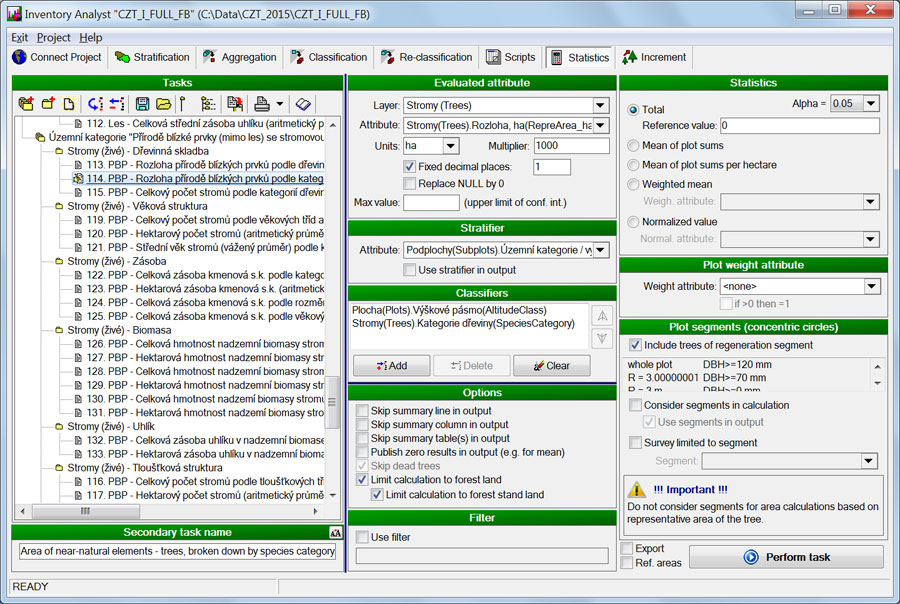 FMIA is a software application for evaluation of statistical forest inventories. It provides the user with easy handling and processing of databases with field data. Data can be completed, pre-processed and processed in order to obtain final statistical results and outputs. Automatically generated outputs consist of classified result tables and graphs. Optionally, the user may complement the results with methodological remarks, term definitions and comments.